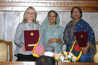 we see her in Dhaka, Bangladesh with Prime Minister Sheikh Hasina and