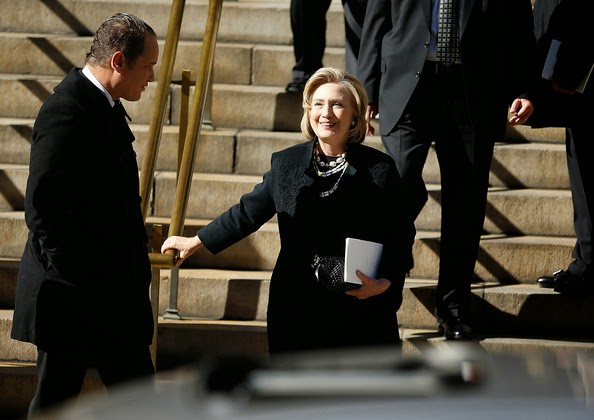 Secretary Clinton, meanwhile, attended the private funeral for longtime family friend, designer Oscar de la Renta, which was held at the Church of St. Ignatius Loyola in Manhattan.